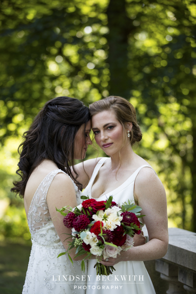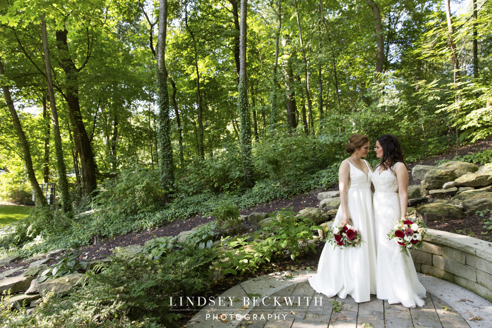 We went to the Cleveland Cultural Gardens and found some quiet green corners for portraits. Kris and Shelly wanted some modicum of privacy while we were shooting, so the Cultural Gardens were an obvious choice. Even though they’re a popular spot for wedding parties, the Cultural Gardens are so large, it’s not difficult to find a quiet, pretty spot. Plus, Kris and Shelly both like hiking, so they didn’t mind climbing around the Hungarian garden with me in search of the perfect light 🙂