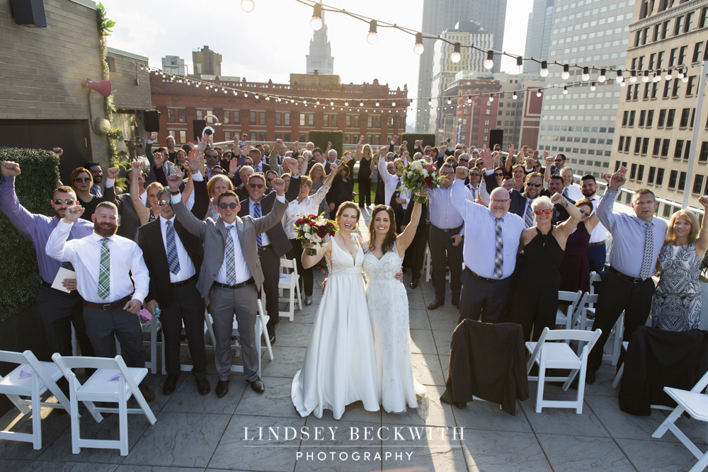 From the Cultural Gardens, we headed downtown to the Metropolitan at the 9 for their wedding ceremony and reception. They got married on the Azure Rooftop of the 9, and the setting was nothing short of dazzling. After the ceremony, Shelly made sure I had a tall ladder, and I climbed to the top (wasn’t scared at all not a bit well maybe a little bit) and took a photo of them with all of the guests. It was truly a gorgeous day full of love. Here are some of my favorite images from Kris and Shelly’s Metropolitan at the 9 wedding.